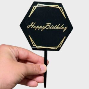 HAXAGON ACRALIC GOLD BROWN CAKE TOPPER