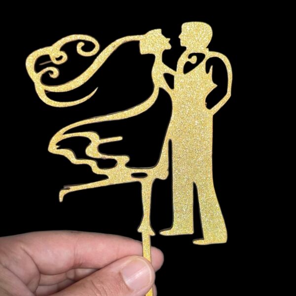 WOODEN COUPLE CAKE TOPPER GOLD